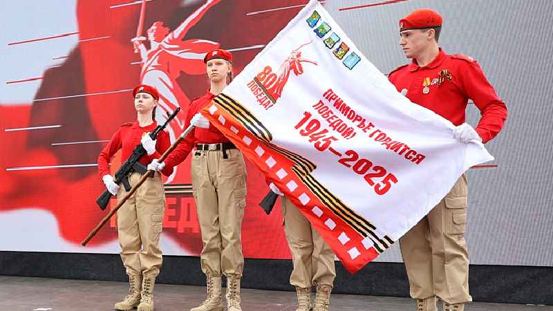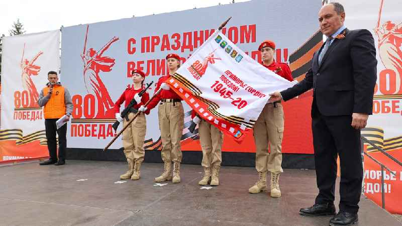«Эстафета Победы» уверенно шествует по Приморью. Во вторник, 8 апреля, знамя эстафеты вместе с копией знаменитого Знамени Победы в Лучегорске встретили Губернатор Приморского края Олег Кожемяко и глава Пожарского муниципального округа Владимир Козак.