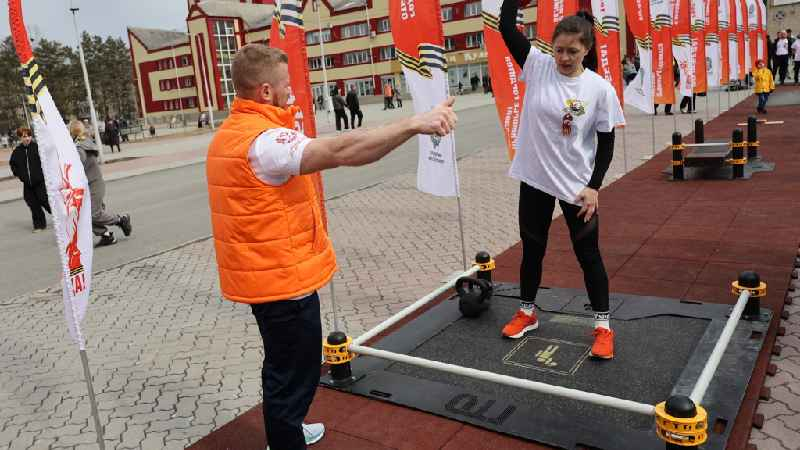 После поздравлений на Знамя эстафеты торжественно прикрепили герб Пожарского муниципального округа. Он стал шестым муниципалитетом, принявшим «Эстафету Победы». Далее Олег Кожемяко осмотрел спортивные станции, на которых жители Лучегорска проявляли себя в разных видах спорта.