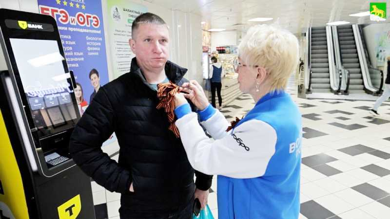 За первый час акции волонтёры раздали более 500 георгиевских ленточек.