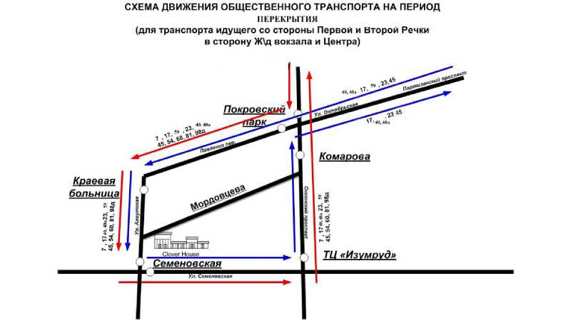 Автобусы, чьи маршруты пролегают от Первой и Второй Речки в сторону центра и железнодорожного вокзала, в районе торгового центра «Клевер Хаус» будут поворачивать налево и двигаться в обратном направлении по Океанскому проспекту.