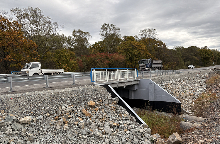 По направлению Артём – Находка приводят в порядок пять мостовых сооружений в Шкотовском округе Приморья. Все они – в высокой степени готовности. Выполненные работы на объектах нацпроекта «Инфраструктура для жизни» проинспектировал представитель общественного контроля. Как рассказали в краевом министерстве транспорта и дорожного хозяйства, ремонтируемые мосты расположены в районе населённых пунктов Штыково, Шкотово и Смоляниново на дороге Артём – Находка. Так, мост на 29 километре готов на 71%. Подрядчик «Строймост ДВ» работает на подходах к сооружению. После устройства подходов проезжую часть заасфальтируют, и смонтируют барьерное ограждение. На 32 километре Артём – Находка ремонт выполнен на 73%. Здесь выполняются работы по устройству подходов к мосту, а также по подготовке основания к укладке асфальтобетонного покрытия. Специалисты «Строймост ДВ» привели в порядок мост на 37 километре. Здесь уже запущено движение, осталось обустроить участок – установить барьерное ограждение и разобрать временный объезд. «На наших объектах – на 29, 32 и 37 километрах – в совокупности задействовано 10 единиц техники. Это бульдозер, два экскаватора, два катка, грейдер и четыре самосвала», – подчеркнули в компании «Строймост ДВ». Подрядчик «ВСК-1» ремонтирует два моста. На 50 километре Артём – Находка работы выполнены на 95%, осталось только разобрать временный объезд, движение по мосту запущено. А на 51 километре мостостроители ремонтируют пролётное строение, сейчас оно готово на 50%. В работах задействованы экскаватор, автоманипулятор и 10 рабочих. Отметим, ход работ на объектах проинспектировала общественный наблюдатель Шкотовского округа Евгения Анищенко. Народный контролёр позитивно оценила выполненные работы. С начала 2025 года общественные наблюдатели более 300 раз проверили ход работ на объектах ремонта автомобильных дорог в Приморье по нацпроекту «Инфраструктура для жизни». Часть выездов прошла совместно с руководством регионального минтранса. Напомним, пять мостов на трассе Артём – Находка приводят в порядок благодаря нацпроекту «Инфраструктура для жизни». Всего в крае в текущем году обновляют 24 мостовых сооружения, 17 из которых – по нацпроекту.