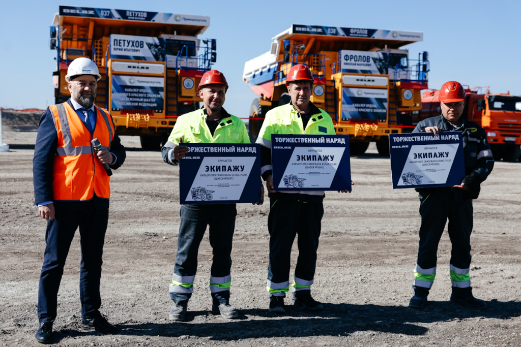 В посёлке Новошахтинский Приморского края состоялся торжественный запуск новой горнотранспортной техники. Трём карьерным самосвалам БелАЗ присвоены имена шахтёров – рекордсменов «Приморскугля».